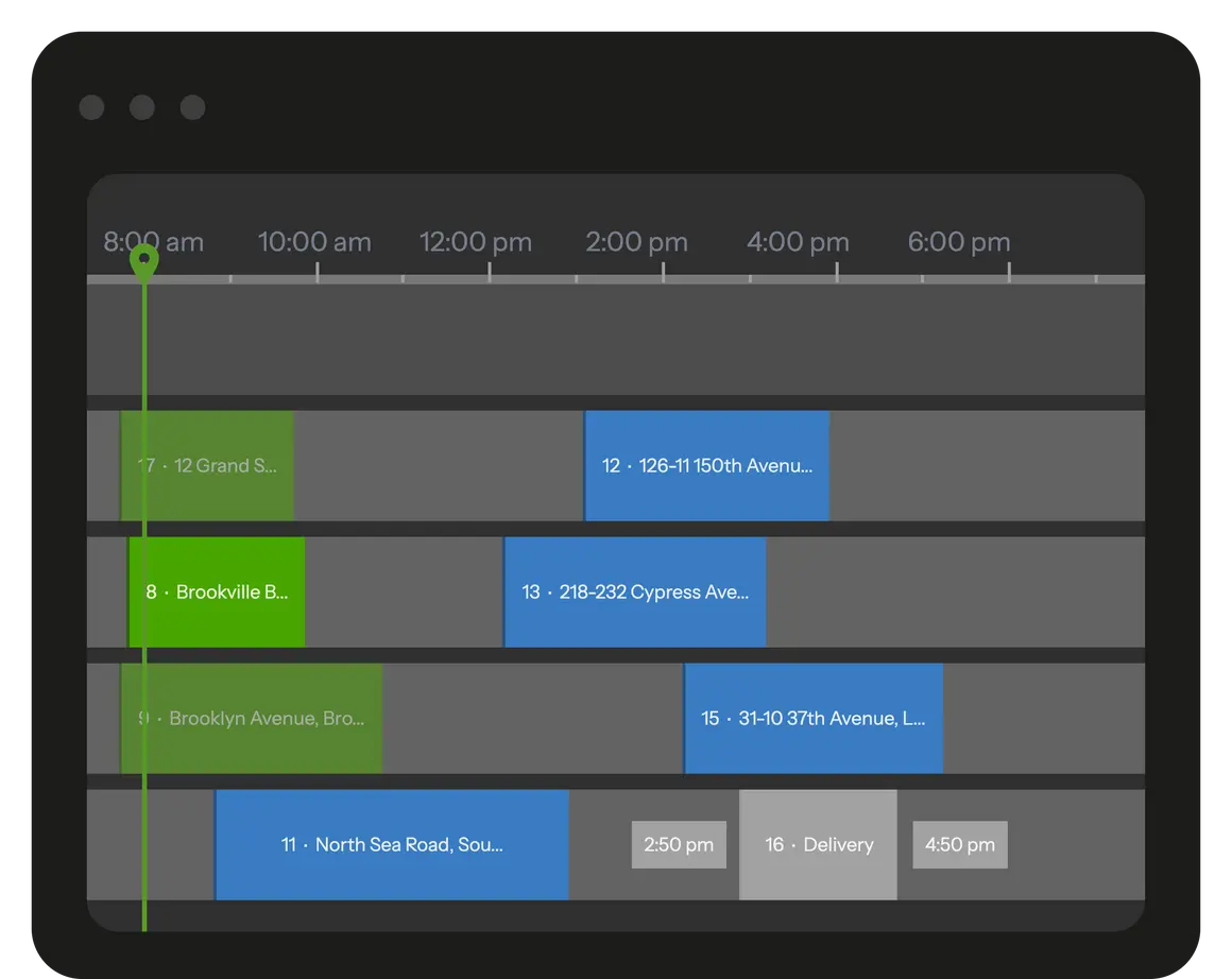 For office teams, the map is usually the first place to check when something goes off plan. It shows where jobs are scheduled, how they are spread across the city, and which technicians are already on the move.