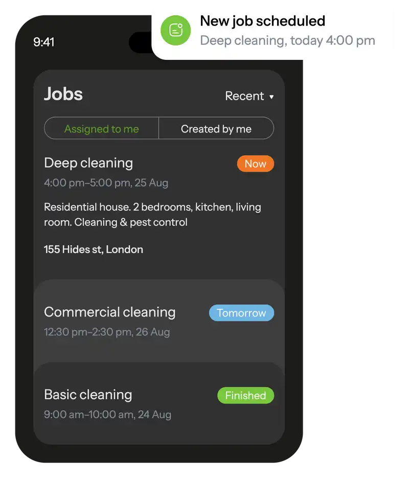 Track your workers' trip during working hours, schedule jobs to your workers based on their location right on the map.
