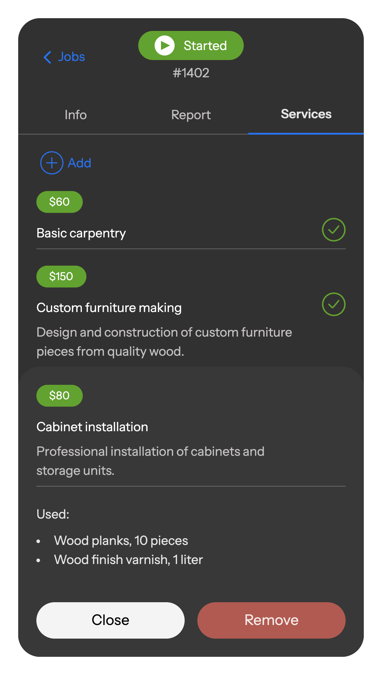 Good carpentry management software gives you one place to follow the moving parts of each job – the client’s history, the materials already used, and the steps still ahead. For carpenters who handle both quick repairs and multi-stage builds, this clarity matters: what starts as rough framing can turn into detailed finish work days later, and the team needs a clear record to avoid repeating measurements or ordering materials twice. With software for carpenters, the notes, photos, and material logs stay tied to the same job, so the next technician knows exactly where things stood. Planado supports this flow by keeping updates easy to record and even easier to check before heading onsite.