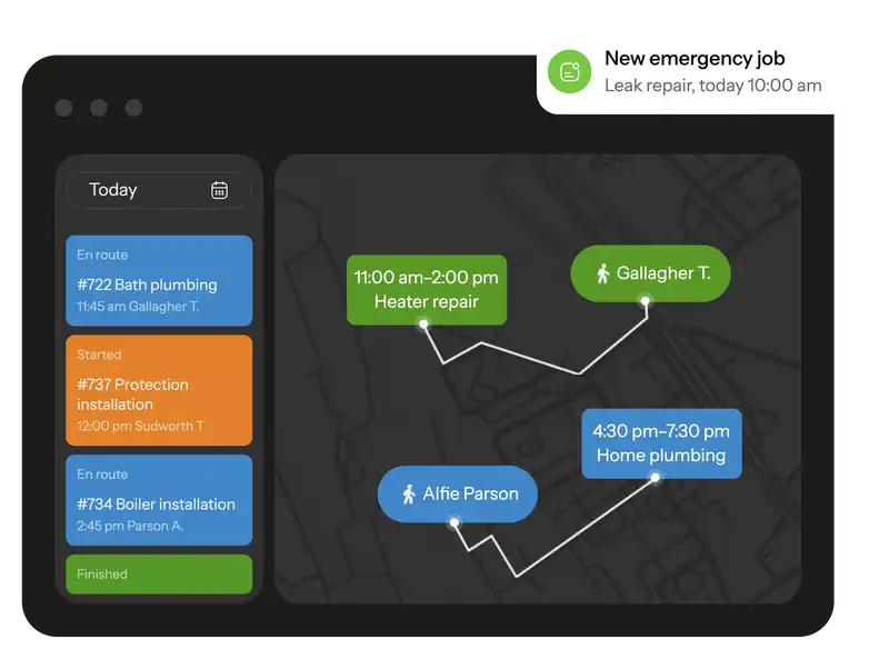 GPS location tracking helps calculate mileage and assign the closest worker to an urgent job.