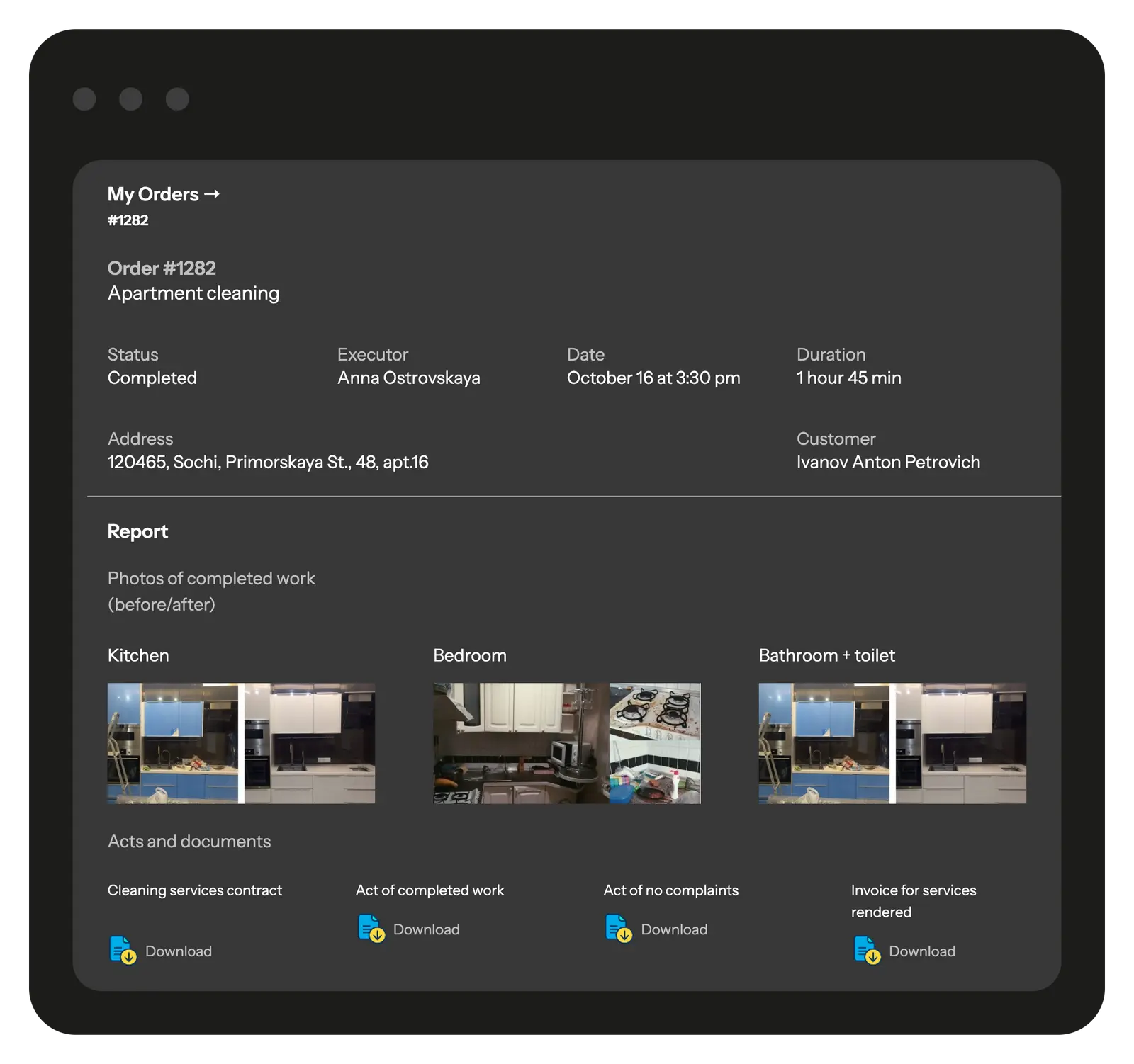 Give your customers access to a branded page with complete information about repair and service requests, work stages, photo reports, and technical documentation. Through the customer portal, your customers can track the status of their requests, view completed and planned work, and leave feedback on the quality of service. You decide which requests, objects, and details will be available for the customer to view.