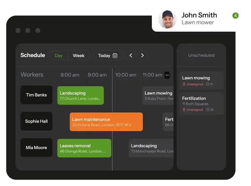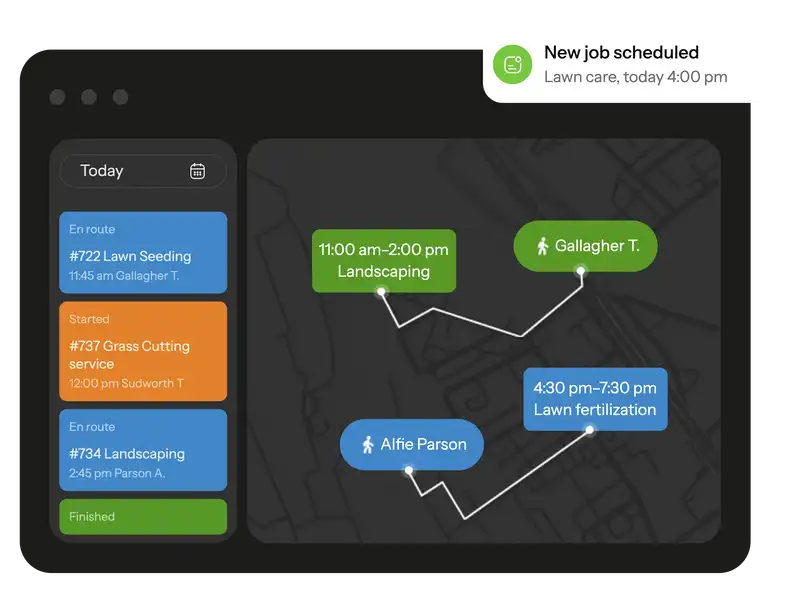 Track your workers' trip during working hours, schedule jobs to your workers based on their location right on the map. Task and movement history is recorded and available at any time
