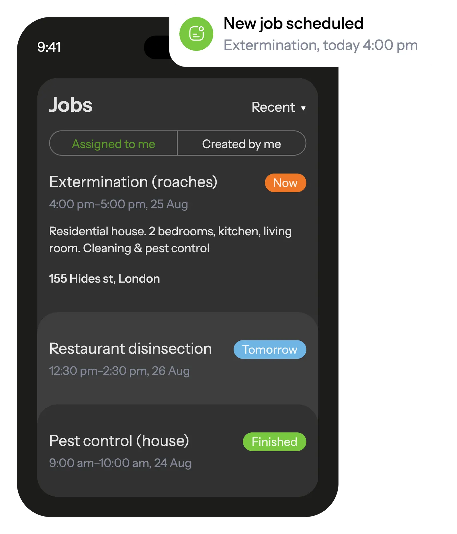 In the mobile app, your pest control technicians see all scheduled tasks and receive notifications about new assignments.