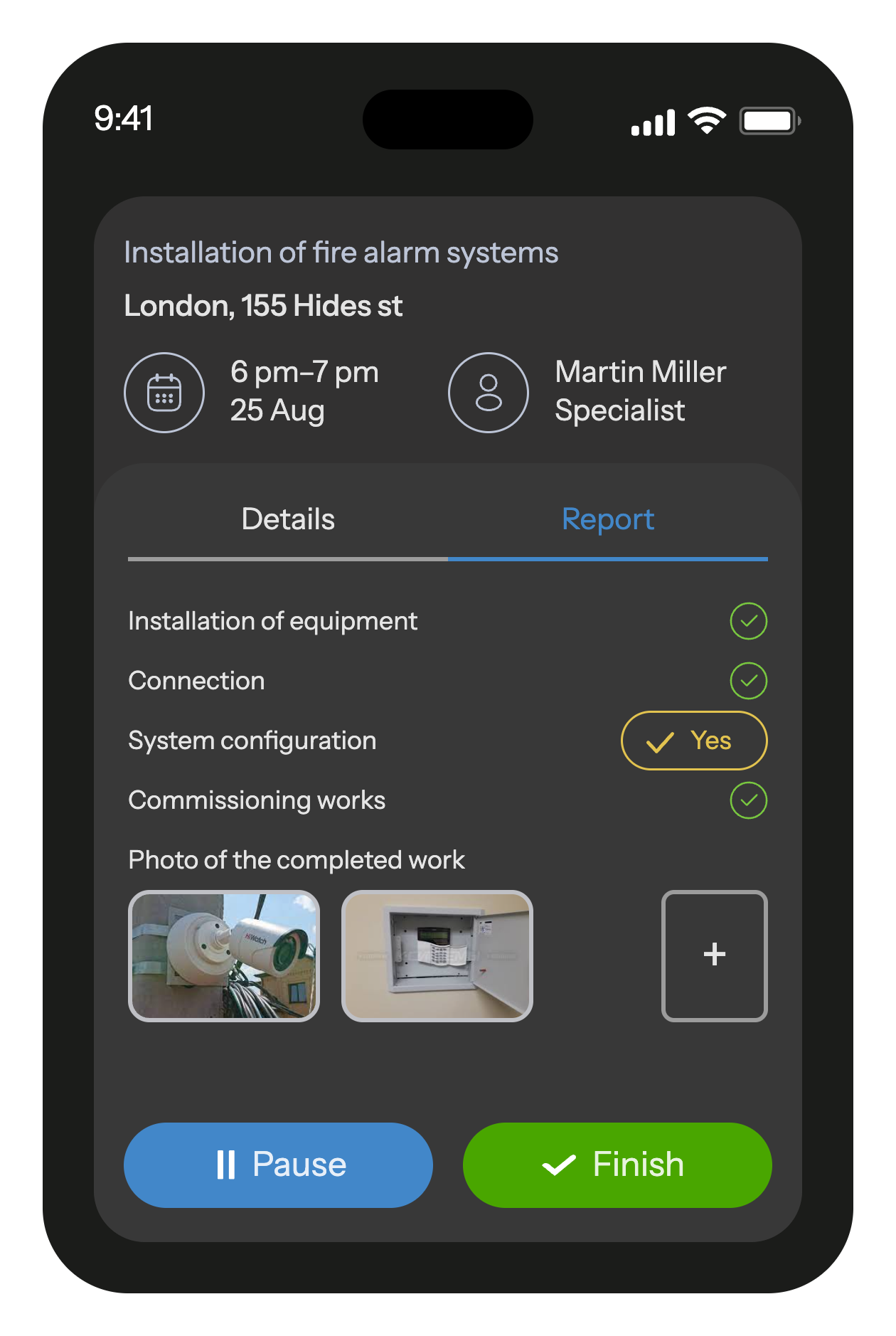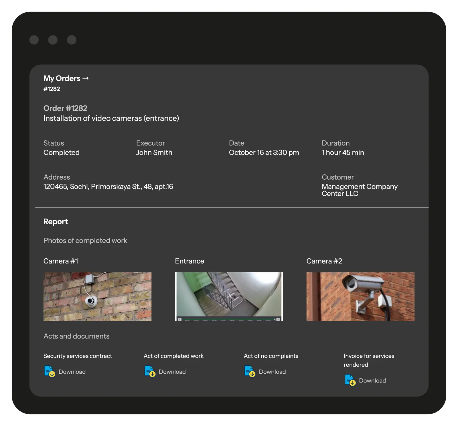 Transparency for managers β€” the entire work history, photo reports, and documents are available online