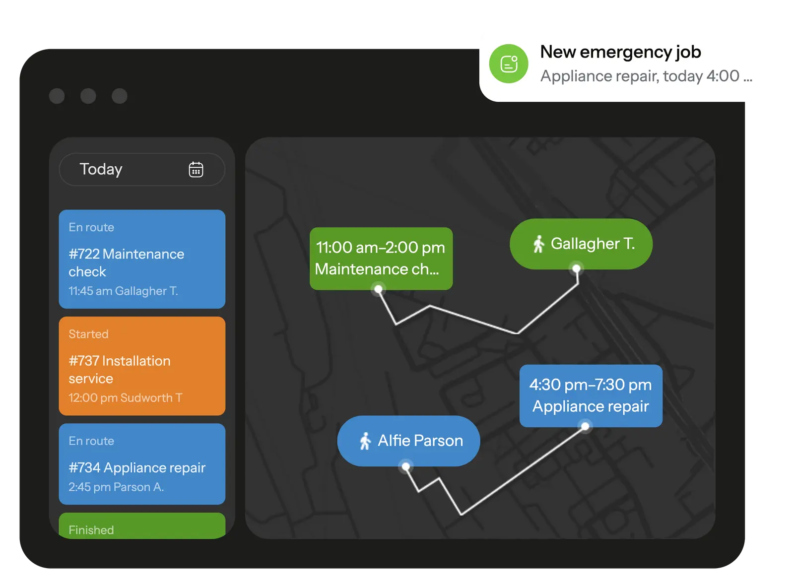 GPS location tracking helps calculate mileage and assign the closest worker to an urgent job.