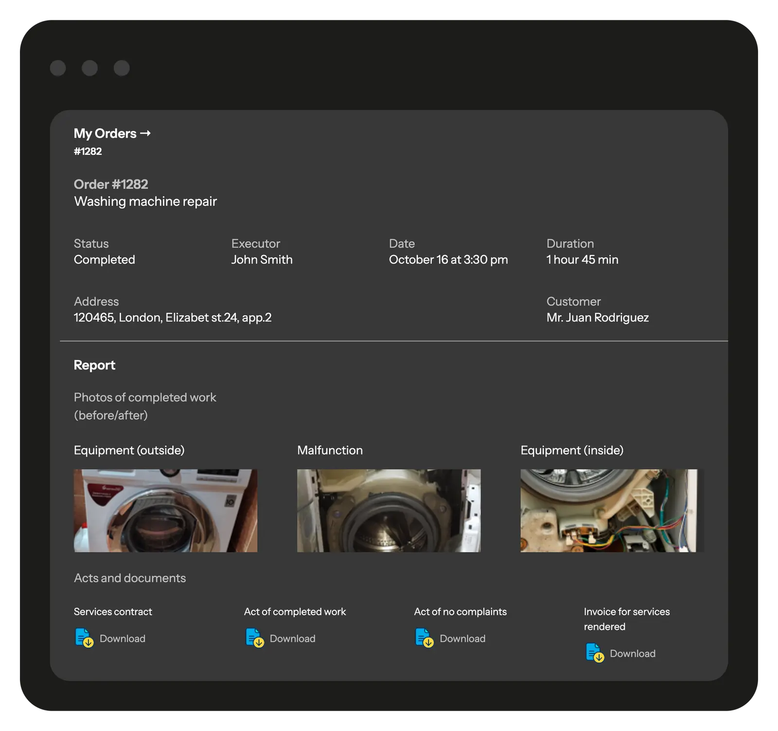 Give your clients access to a branded portal with detailed information on their requests, job progress, and photo reports.